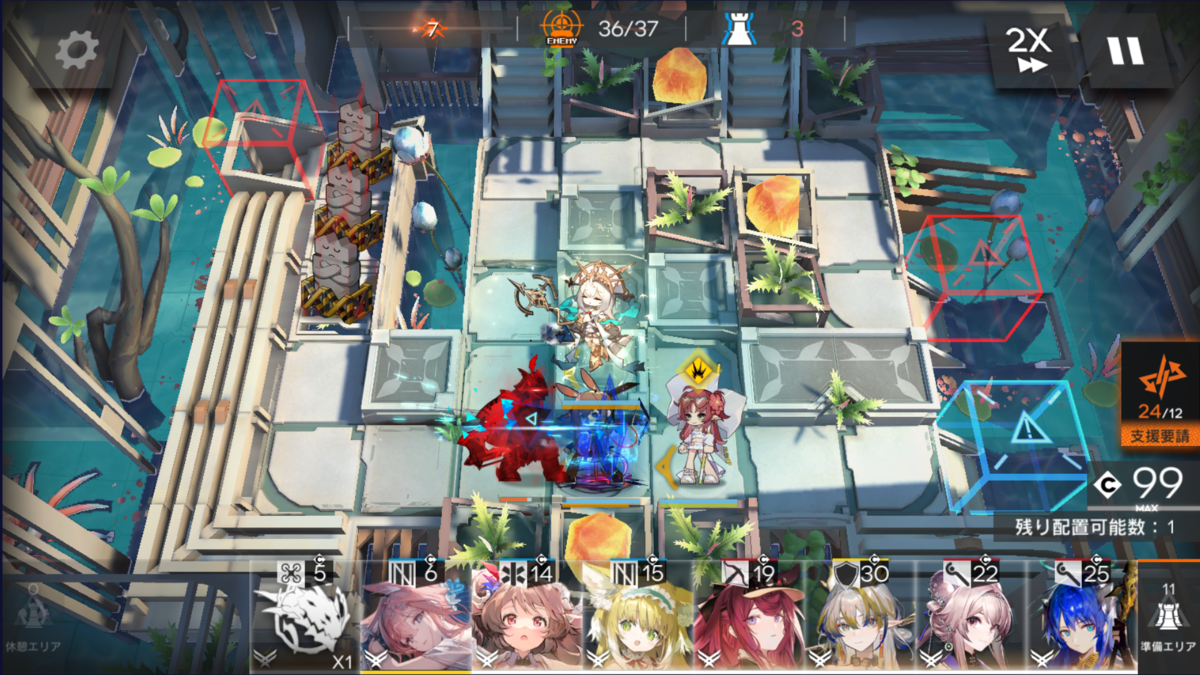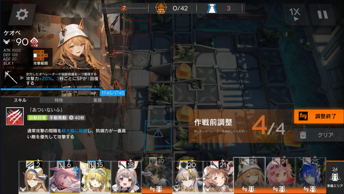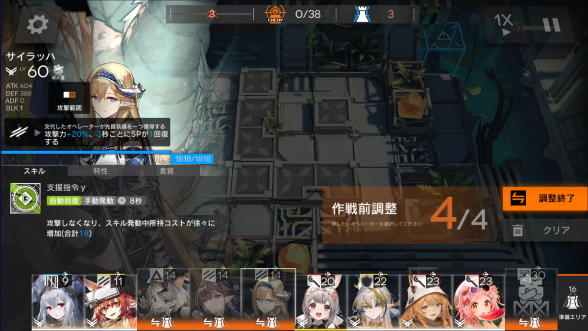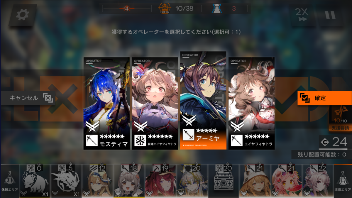 今回のマップは、地上敵多めなので前衛アーミヤ(以後 剣ミヤ)で採用。