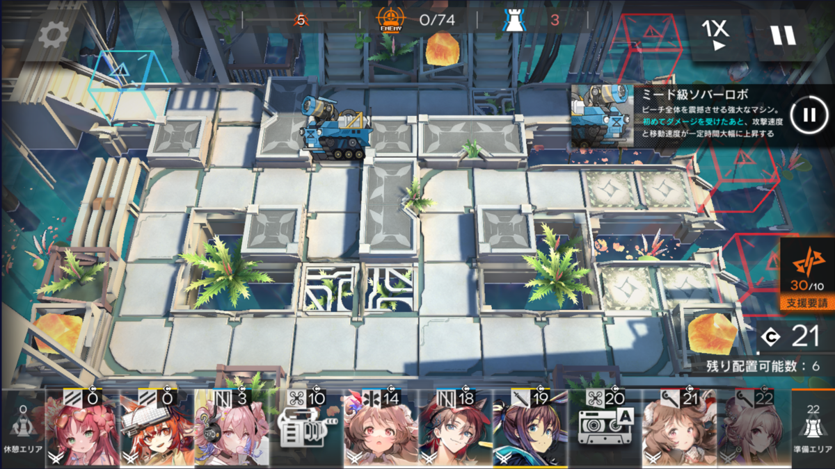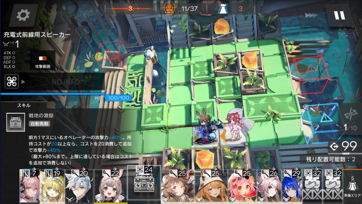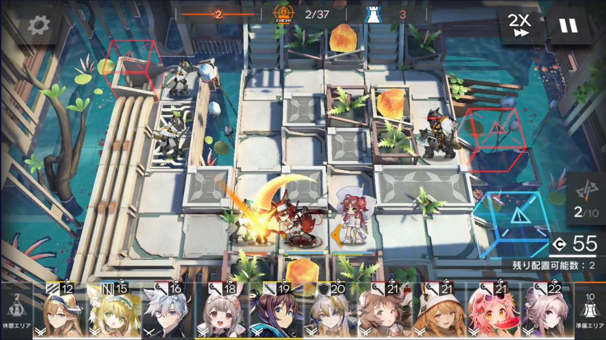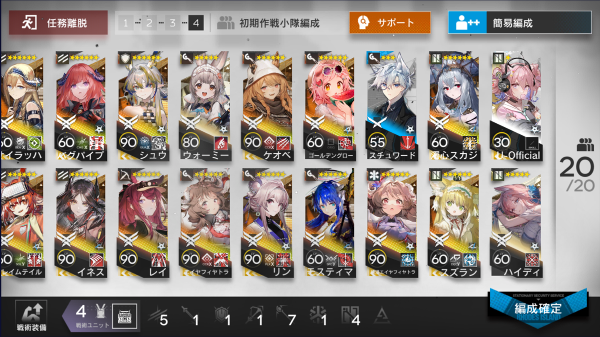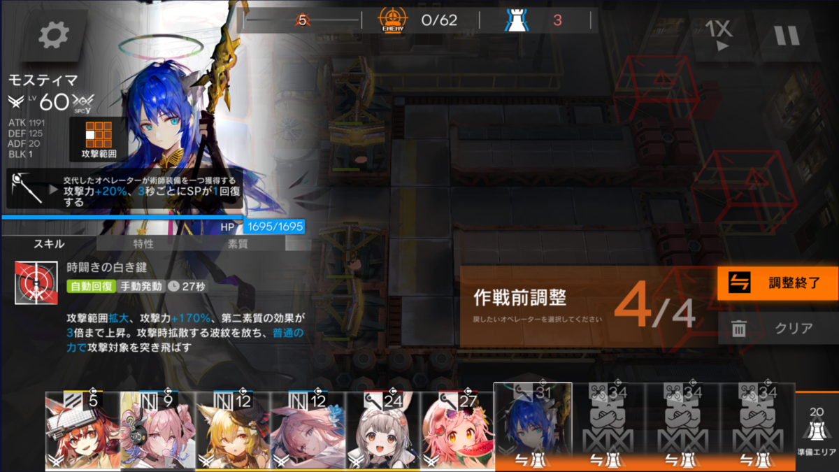 今回のマップは、地上敵多めなので前衛アーミヤ(以後 剣ミヤ)で採用。