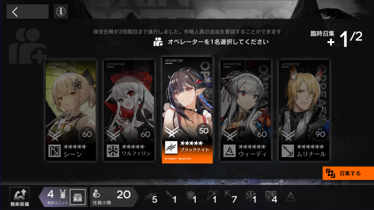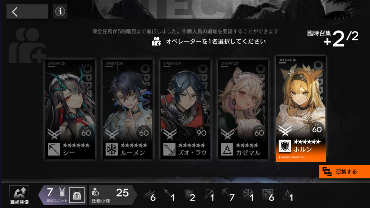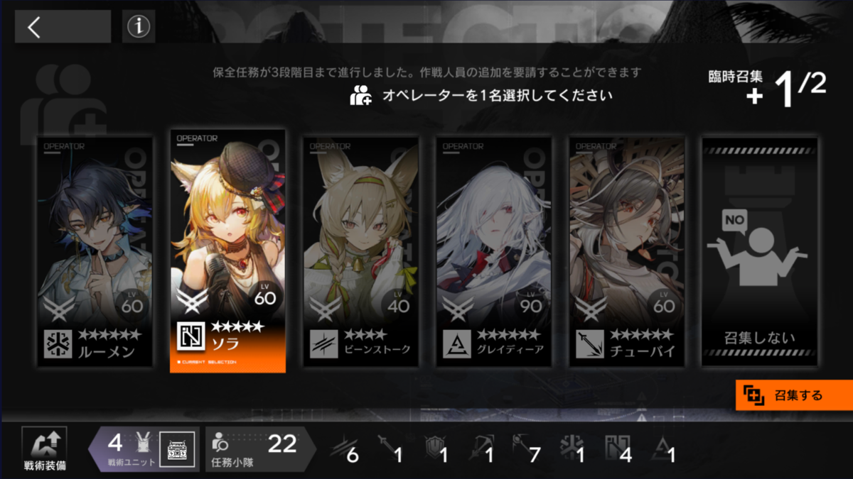 補助 戦術装備のピックでアーミヤ召集。