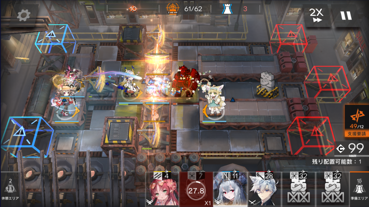 中盤、終盤のラッシュの物量がすごく、さすがにアーミヤ1人でさばくのはきつかったので、周りでサポートしました。