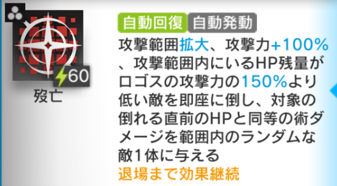 ロゴスの攻撃力より残りHPの低い敵が攻撃範囲に入ると勝手にやられます。