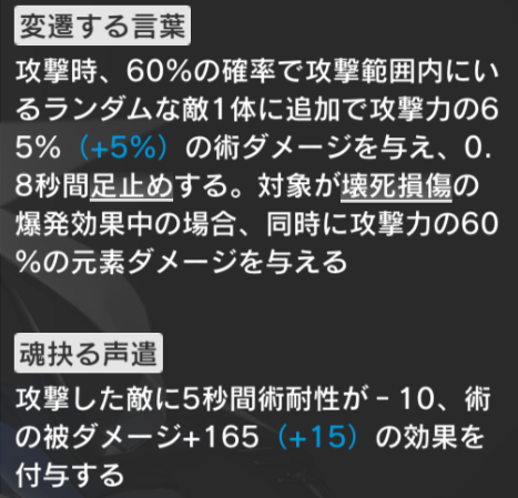 術耐性+70がおもしろいなぁと思っており、20秒間ですが素の術耐性と合わせて90になります。