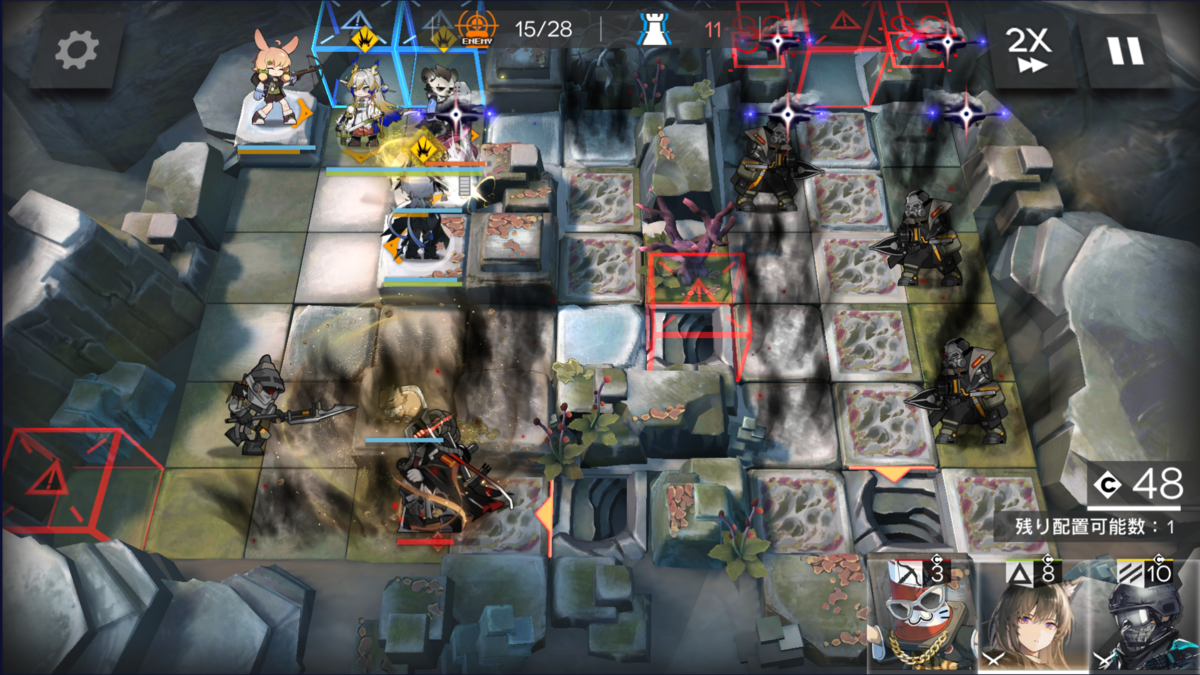 マップによっては地上マスに配置し、罠師の広めの攻撃範囲と自身の火力のおかげで、周回や攻略で1レーン任せるといったことをよくしていました。